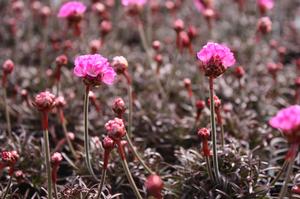 Tufts of deep purple-bronze, evergreen foliage with globe-shaped, magenta blooms on wiry stems. Compact mounds are perfect along pavers, edging or in rock gardens.