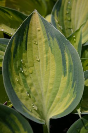 Hosta 'June' is a sport of 'Halcyon'. It is an interesting specimen that will undergo appealing color changes throughout the season. The lime green center turns to bright creamy yellow, an irregular broad edge is blue and often streaks through the center color!