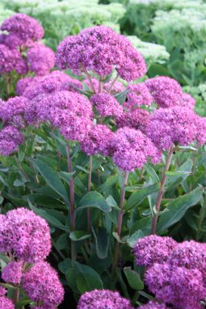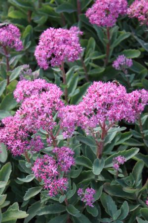 This improved 'Autumn Joy' comes from England. A compact, mounded plant, with rounded heads of intense pink over blue-green, rounded succulent foliage. Heat, drought, poor soil tolerant. Attracts butterflies. Great for cut and dried flowers, edgings, rock gardens, masses and containers.