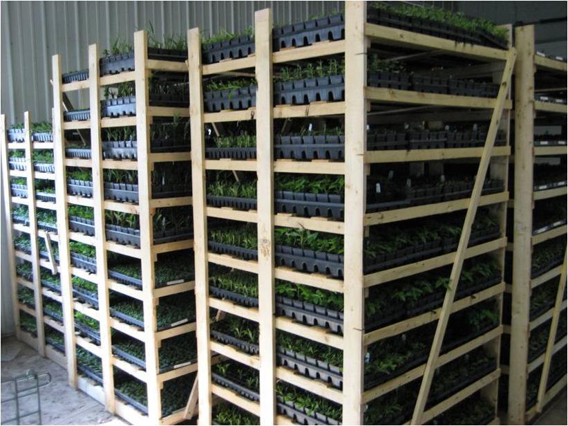 Orders that are less than 32 trays will ship via UPS Ground in flat-fitting carboard boxes with protective inserts and netting, up to 4 trays per box.Wooden Racks
