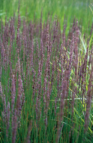 Upright, clump forming tufted grass with narrow green leaves that turn golden yellow in the fall. Blooms of deep purple spikelets in late summer. Stems and foliage are very upright. Very reliable and hardy.