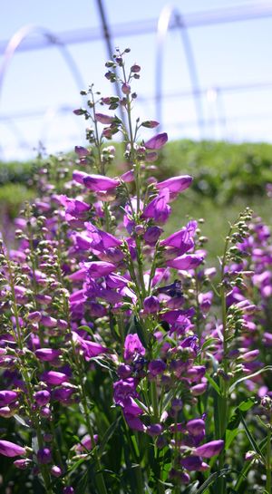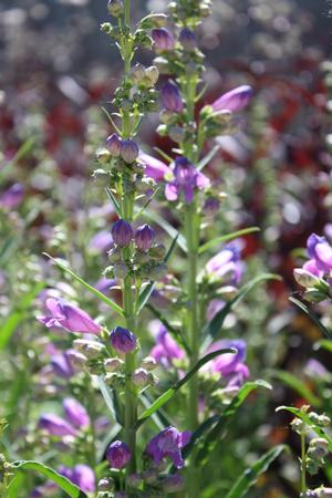 Lavender flowers on loosely formed spires soar above the glossy mounds of foliage.