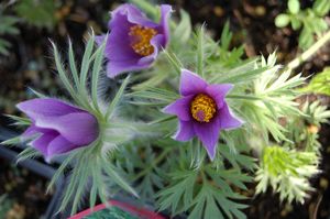 Pretty violet-purple flowers with a yellow center emerge before the fuzzy foliage is fully formed. Feathery seed heads replace the flowers. Glamorize your spring garden with this fuzzy flower!