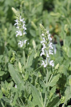 White flower spikes bloom in the summer months to add a cool feeling to the garden. Foliage is fragrant, gray-green.
